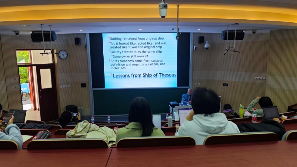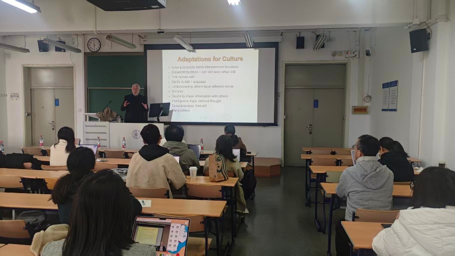 2025年10月25日10:30,积极心理学工作坊第四场在教四306开展。本次主题为“人类的本质和文化”。Baumeister教授在讲座中系统阐述了“人类本质上是文化动物”的核心论题。他提出,人类心智并非仅为应对物理环境而演化,更是为了参与并适应文化这一复杂的社会信息系统。文化作为一种基于信息、可学习、可传承的系统,为人类带来了语言、知识积累、劳动分工与交换网络四大关键优势,从而极大地提升了生存与繁衍的成功率。人类拥有缓慢的成熟过程(以便于学习)、高度发达的自我意识、语言能力、心理理论(理解他人拥有独立心智)、教学行为、道德感以及分享信息的冲动。Baumeister教授也客观分析了文化与天性之间的潜在冲突(如个体自私性与集体利益的矛盾)。提问环节,听众与Baumeister教授探讨了不同文化单元间的竞争如何影响我们的群体行为与道德界限,以及语言差异是否会影响深层的逻辑与数学思维。