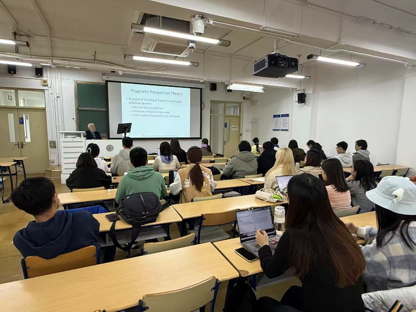 2025年10月24日11:00,Baumeister教授积极心理学工作坊第一场在教二312开展。本次主题为“关于未来的思考:是否、何时、为何、如何、何人、何事……以及那又怎样?”,教授在报告中指出,人类意识的独特功能在于能够超越当下,构建并模拟多种未来可能性,此过程被称为"务实前瞻" (pragmatic prospection)。教授进一步阐释,未来并非单一注定的结局,而是一个由多种可能性和不确定性构成的"可能性矩阵" (matrix of maybe),我们对其的思考,核心目的并非精准预测,而是为了规划行动、评估不同选择可能带来的后果,从而更好地为未来做准备。提问环节,听众与Baumeister教授探讨了“务实前瞻”能力与日常焦虑之间的关系,以及如何将未来思考的理论应用于教育实践,以帮助青少年更好地进行职业与人生规划。