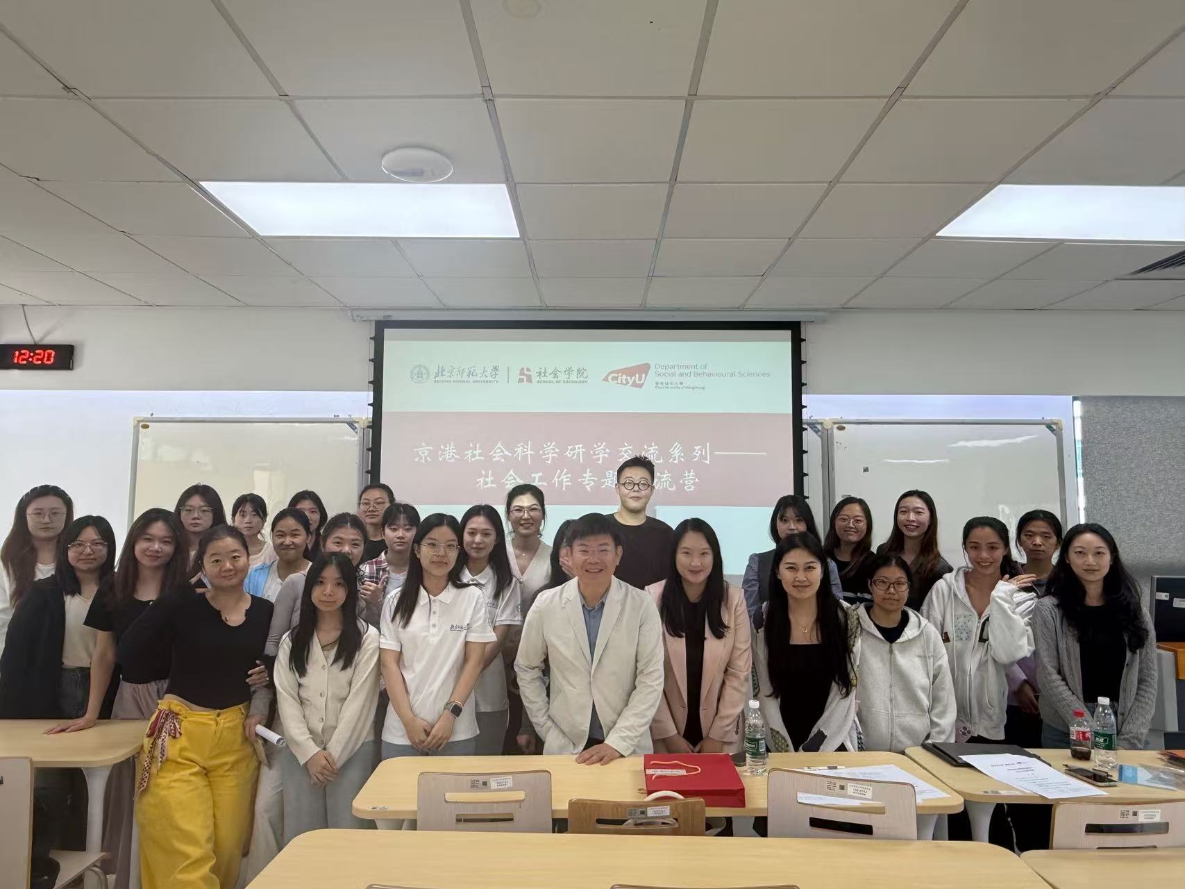 活动最后,京港两校师生合影留念。本次社会工作专题交流营不仅增进了两校在社会工作教育与实务方面的交流互鉴,也为青年学子搭建了跨地域、跨院校的专业对话平台,为今后更多形式的合作交流奠定了良好基础。
