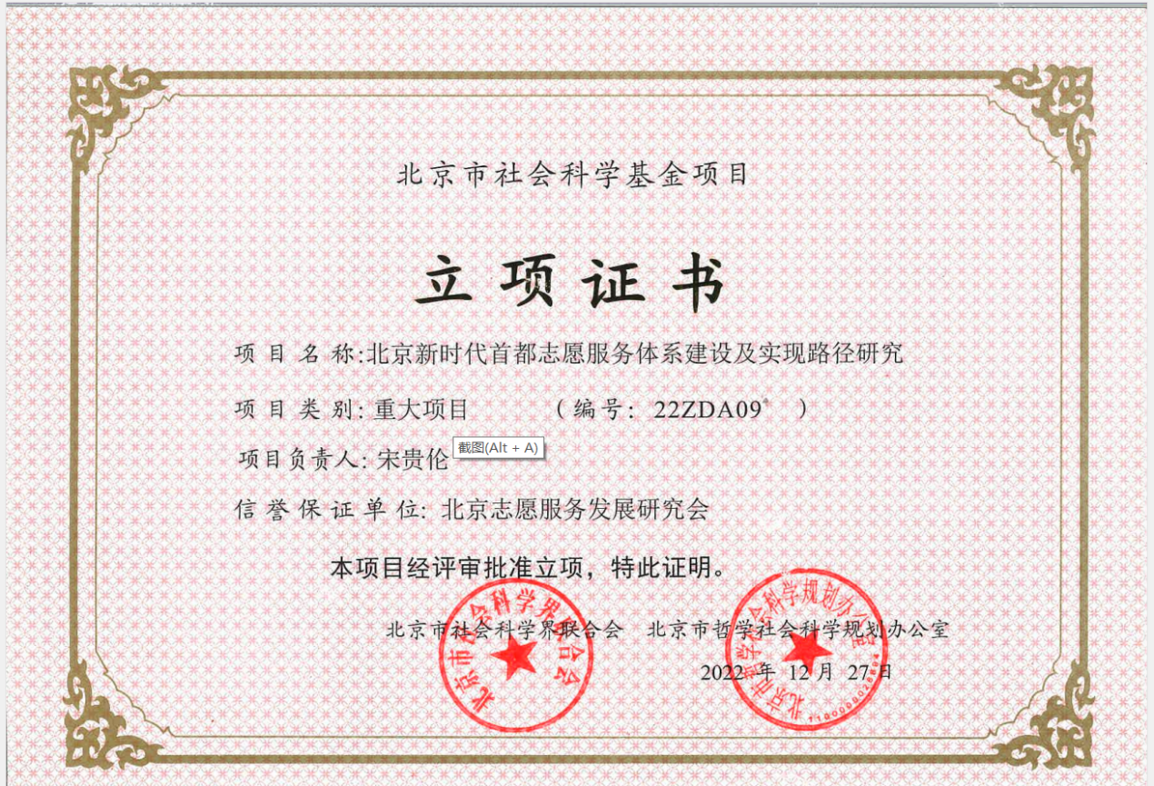 近期,公司宋贵伦教授主持的项目《北京新时代首都志愿服务体系建设