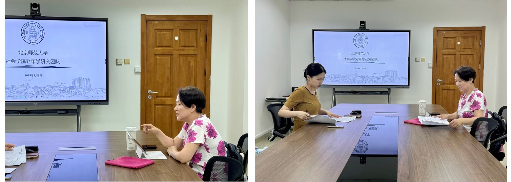 7月9日上午,楼玮群教授与付媛媛副教授围绕老年学研究合作开展专题交流。双方围绕科研项目联合申报、实证研究合作与学术成果共同发表等合作路径进行了系统梳理,并就老年学理论前沿、交叉研究方向与方法创新等议题展开深入研讨。在交流过程中,楼玮群教授结合其在家庭老年学领域的丰富研究经验,重点就项目设计思路、论文选题以及前沿研究方向把握等方面提出了具有针对性的建议,为进一步明确双方未来合作的重点领域与推进机制提供了有力指导。